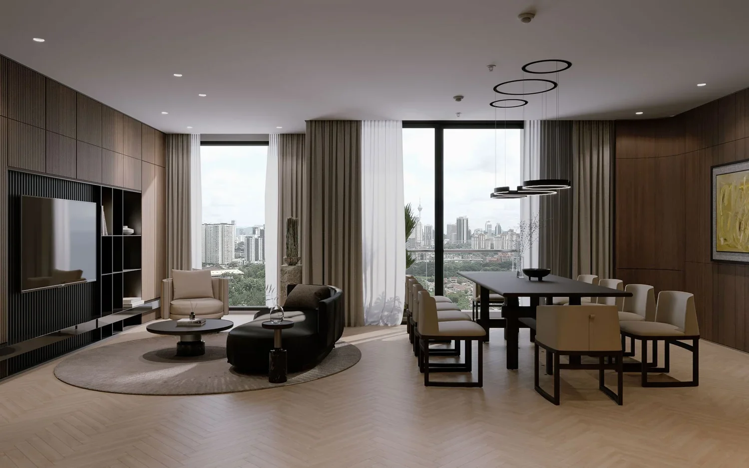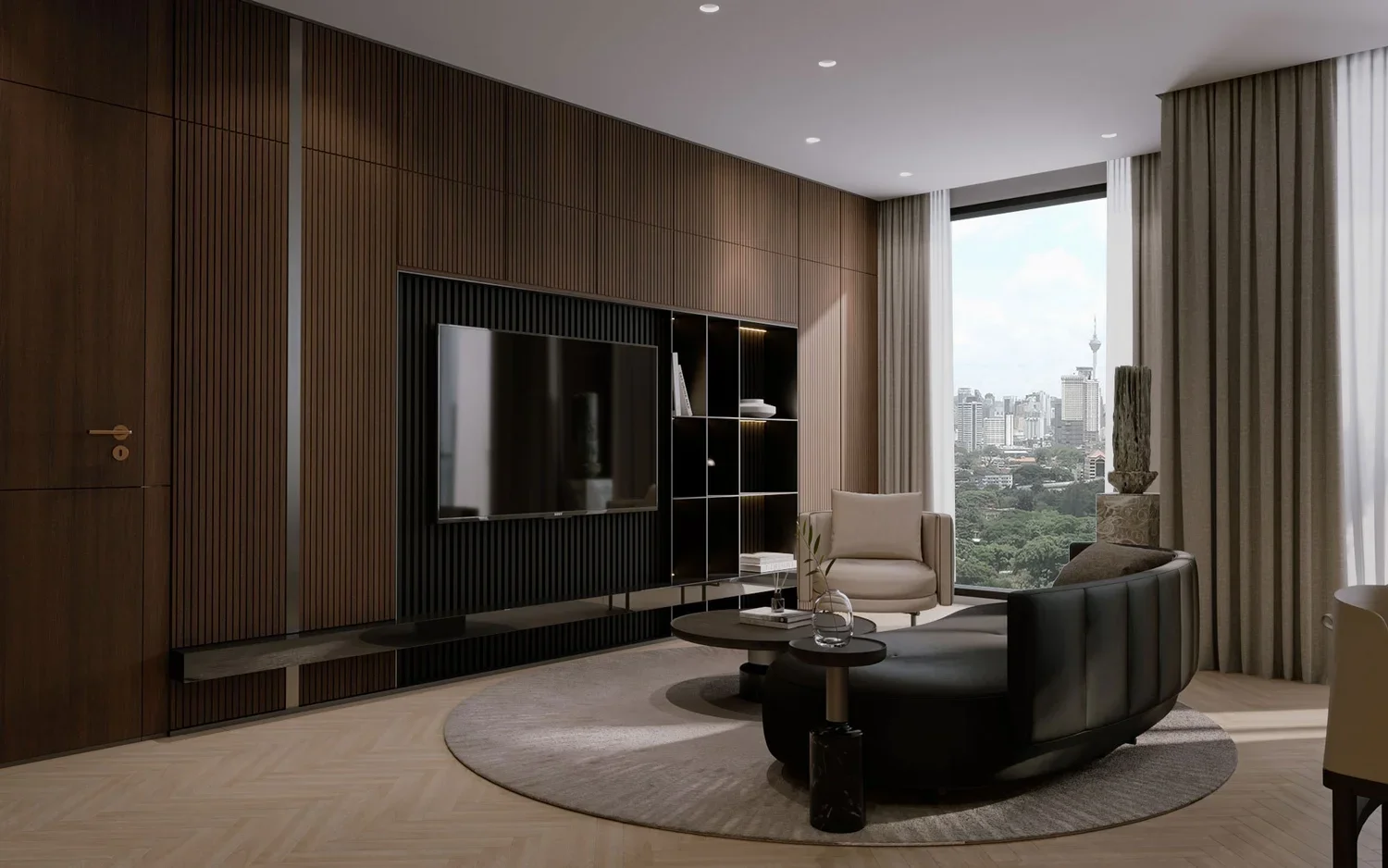 Tổng thể tạo nên bầu không khí trang nhã, tĩnh tại nhưng đầy chiều sâu, nơi nội thất cao cấp không chỉ hoàn thiện thẩm mỹ mà còn nâng cao trải nghiệm sống.